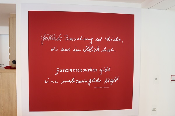 Die meisten Bewohner*innen kennen den Garten des Provinzhauses bereits von Spaziergängen durch den Park– von Innen haben es bisher nur wenige gesehen. Dazu gab es jedoch nun Gelegenheit: Unser Ausflug zum Provinzhaus begann mit kleinen Gesprächsgruppen von Bewohner*innen und im Haus lebenden Ordensschwestern, um sich gegenseitig etwas kennenzulernen. Nach einer Andacht in der Kapelle durften wir uns eine der Wohngemeinschaften anschauen. Die herzliche Einladung, die Kapelle auch nach dem Besuch als Ort der Stille und des Gebetes zu nutzen, nehmen sicherlich einige Bewohner*innen gerne an.