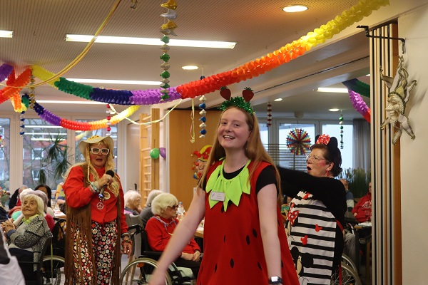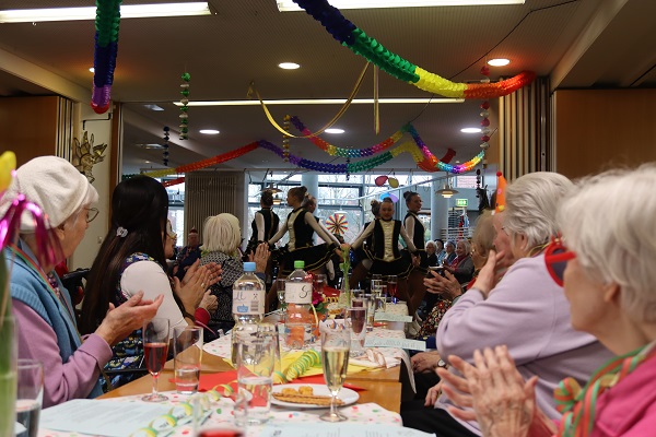 „Froh zu sein bedarf es wenig“…, so feierten die Bewohner*innen der "Burg" gestern Karneval. Waltraud Schulze führte wie gewohnt humorvoll durchs Programm und zündete zahlreiche Raketen. Die Tänze der Aaseeküken und Aaseesternchen sorgten für Staunen über Beweglichkeit, Koordination und Musikalität der Kinder. Die Büttenrednerin hatte die Lacher auf ihrer Seite. Mit kleinen Tanzeinlagen sorgten die Kinder der Reinigungskräfte und der Soziale Dienst für „gute Laune“ überall. Unter der musikalischen Begleitung von Hubert van der Zee wurde gemeinsam gesungen, geschunkelt und gelacht. Ein herzliches Dankeschön geht an die vielen fleißigen Hände, die diesen unbeschwerten Nachmittag möglich gemacht haben.