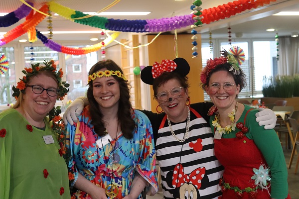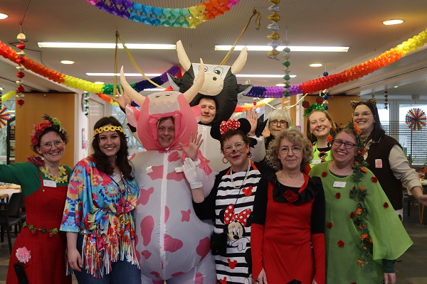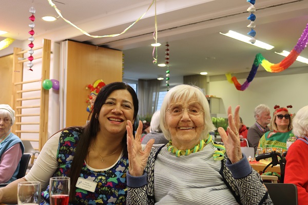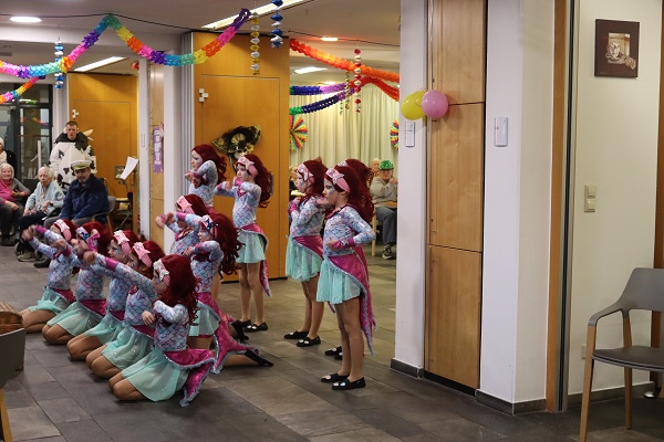 „Froh zu sein bedarf es wenig“…, so feierten die Bewohner*innen der "Burg" gestern Karneval. Waltraud Schulze führte wie gewohnt humorvoll durchs Programm und zündete zahlreiche Raketen. Die Tänze der Aaseeküken und Aaseesternchen sorgten für Staunen über Beweglichkeit, Koordination und Musikalität der Kinder. Die Büttenrednerin hatte die Lacher auf ihrer Seite. Mit kleinen Tanzeinlagen sorgten die Kinder der Reinigungskräfte und der Soziale Dienst für „gute Laune“ überall. Unter der musikalischen Begleitung von Hubert van der Zee wurde gemeinsam gesungen, geschunkelt und gelacht. Ein herzliches Dankeschön geht an die vielen fleißigen Hände, die diesen unbeschwerten Nachmittag möglich gemacht haben.