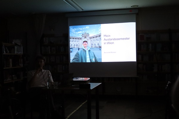 Am Montag durften wir einen spannenden Vortrag von Benedikt Blömer, Medizinstudent im 10. Semester, erleben. Er berichtete von seinem Auslandssemester in Wien und nahm uns mit auf eine Reise durch bekannte Sehenswürdigkeiten wie den Stephansdom und das Schloss Schönbrunn.